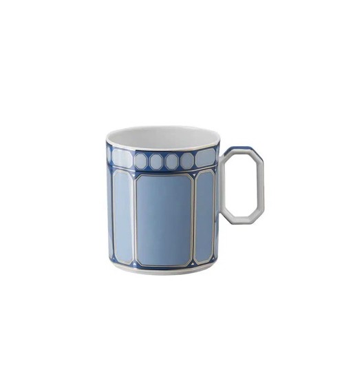 Il bicchiere con manico Signum Fern di Versace è un perfetto equilibrio tra funzionalità e arte decorativa. Realizzato in porcellana finissima ed in collaborazione con Swarovski x Rosenthal, presenta un sofisticato motivo geometrico ispirato alla natura, disponibile in varianti come il verde felce, rosa, azzurro, giallo; ciascuno di essi con accenti dorati, che richiamano l’eleganza intramontabile dello stile Versace. Il design raffinato è arricchito da dettagli preziosi e una silhouette slanciata con manico ergonomico, ideale per servire tè, infusi o caffè con un tocco di lusso. Ogni bicchiere è confezionato in un’elegante scatola regalo, rendendolo una scelta ricercata per occasioni speciali o per impreziosire la propria collezione da tavola.