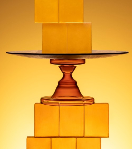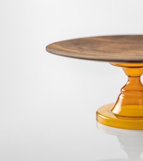 Il contrasto tra la calda intensità del vetro e la base in legno rende l’oggetto più decorativo e deciso, ideale anche come centrotavola o contenitore creativo. Ogni dettaglio è curato con rigore: spessori bilanciati, proporzioni armoniose, trasparenze che dialogano con la luce. La sua struttura leggera ma stabile la rende adatta sia all’uso quotidiano che a occasioni speciali.Pensata per chi ama apparecchiare con gusto, Rubin è molto più di un semplice supporto per dolci: è un oggetto che completa la mise en place con discreta eleganza. Realizzata interamente in Italia, richiede manutenzione attenta – si consiglia il lavaggio a mano per preservare la qualità del vetro e del legno – ma in cambio offre una bellezza senza tempo, capace di elevare anche la più semplice delle torte fatte in casa.
