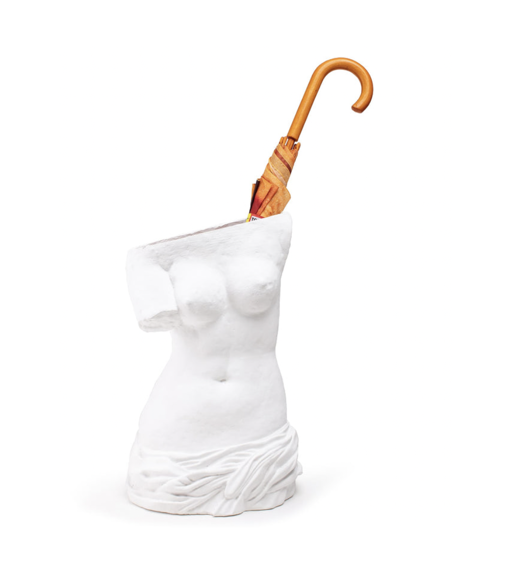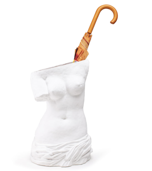 Il portaombrelli Milo Stand di Seletti, progettato dallo Studio Job per la collezione Blow, trasforma un oggetto quotidiano in un vero pezzo d’arte. Realizzato in fibra di vetro, richiama la figura classica della Venere di Milo, reinterpretata con un tocco ironico e contemporaneo.