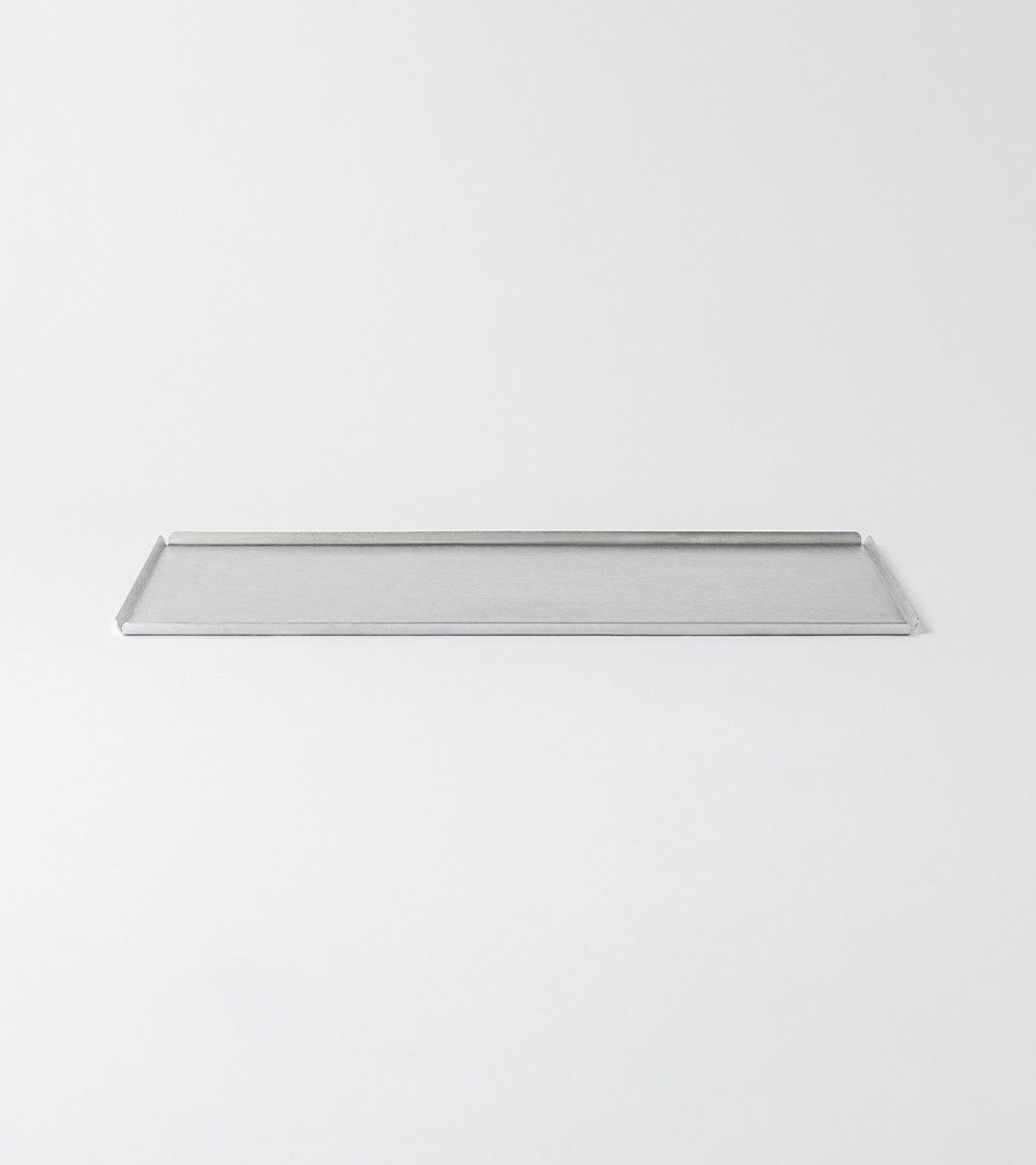 Realizzato interamente in alluminio con finitura stone-washed, il vassoio Storm di KnIndustrie è molto più di un semplice accessorio da portata: è un oggetto di design essenziale, pensato per trasformare ogni gesto in un’esperienza visiva e tattile. La superficie, volutamente irregolare e opaca, rivela una texture materica che richiama l’usura controllata del metallo, conferendo al vassoio un aspetto vissuto e contemporaneo, capace di dialogare sia con ambienti minimalisti che con contesti più rustici o industriali. Le sue linee sono nette, pulite, ma non fredde: la forma rettangolare, con bordo basso e profilo sottile, restituisce una presenza leggera, quasi sospesa, perfetta per servire antipasti, dolci, sushi o piccole portate da condividere.