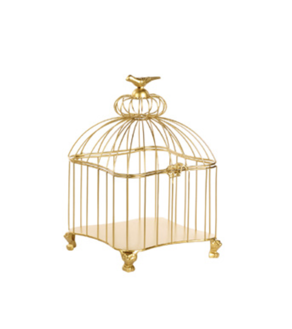 La gabbietta decorativa Goodwill unisce eleganza e leggerezza: struttura in metallo dorato con dettagli bianchi, sbarre arcuate e base rialzata per creare spazio a composizioni luminose o floreali. Il dettaglio dell'uccellino posto nel punto più alto rende dinamica e simpatica la gabbietta, che nella sua semplicità risulta essere elegantissima. Ideale come centrotavola o elemento scenografico, valorizza ogni ambiente con stile raffinato senza appesantire l’arredo.