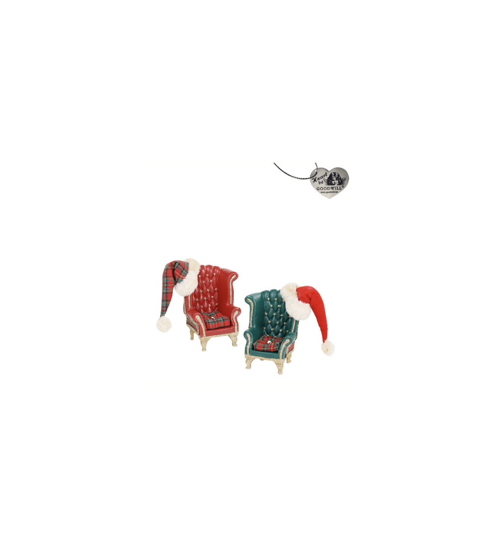In quanti da bambini non sognavano di sedersi tra le braccia di Babbo Natale sulla sua sedia magica? Riporta quella magia sul tuo albero con il pendente di Goodwill, curato nei minimi dettagli. Disponibile in due versioni.